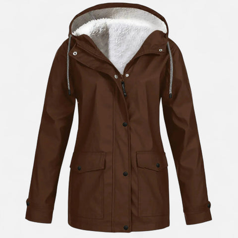 Casaco de Esqui à Prova de Vento com Capuz para Mulheres em Veludo Plush