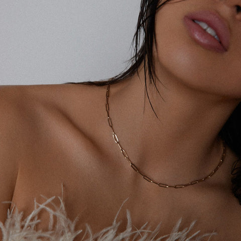 Colar De Clipe De Papel Tamanho Perfeito. Adoro esse colar para usar sozinho ou com pingente. Também fica ótimo quando usado em conjunto com outros tipos de correntes de ouro. Absolutamente recomendo e adorei! Ótima qualidade também! Recomendo a Faetton &Co.