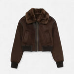 Jaqueta Bomber Feminina Marrom Luxuosa com Detalhes em Pelúcia