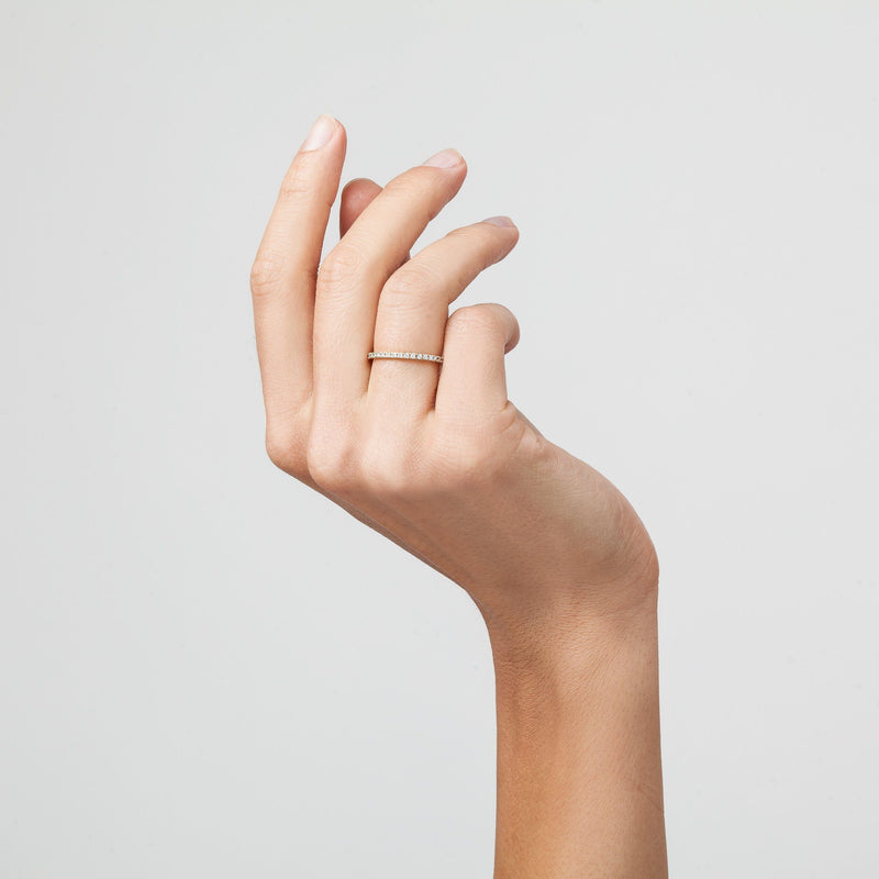 A presença minimalista se encontra com a atemporalidade em um anel moderno e brilhante