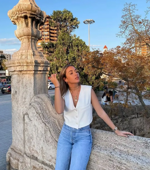 Colete feminino Branco com botões Colete feminino Branco com botões Colete feminino Branco com botões Colete feminino Branco com botões Colete feminino Branco com botões