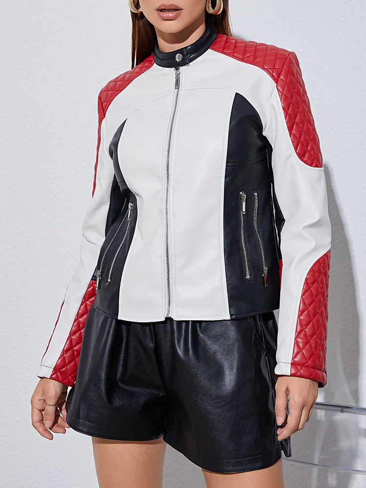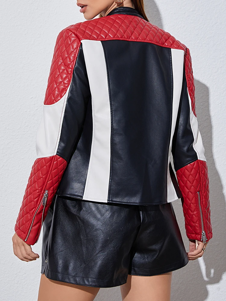 A jaqueta sport Faetton é confeccionada em couro. A peça possui colarinho simples, mangas longas, recortes, comprimento curto, shape justo, caimento reto e fechamento frontal por zíper.